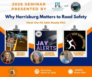 Join Joseph Piscitello’s seminar to introduce the PA Safe Roads PAC to the cycling community at the Philly Bike Expo. Joe and fellow Board members will explain why the PAC’S work in Harrisburg is CRITICAL to make roads safe throughout PA. Attendees will hear about 2026 legislative priorities, including Parking Protected Bike Lanes, Jay Alert Notification, and Intelligent Speed Assistance.
