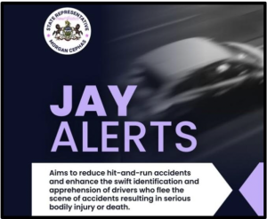 Inspired by the tragic death of 8yearold Jayanna Powell, the Jay Alert proposal would create a statewide notification system to alert auto body shops about hitandrun crashes involving death or serious injury. Modeled after the Amber Alert system, Jay Alert aims to close critical gaps in identifying vehicles involved in fatal and serious hit and run crashes.
